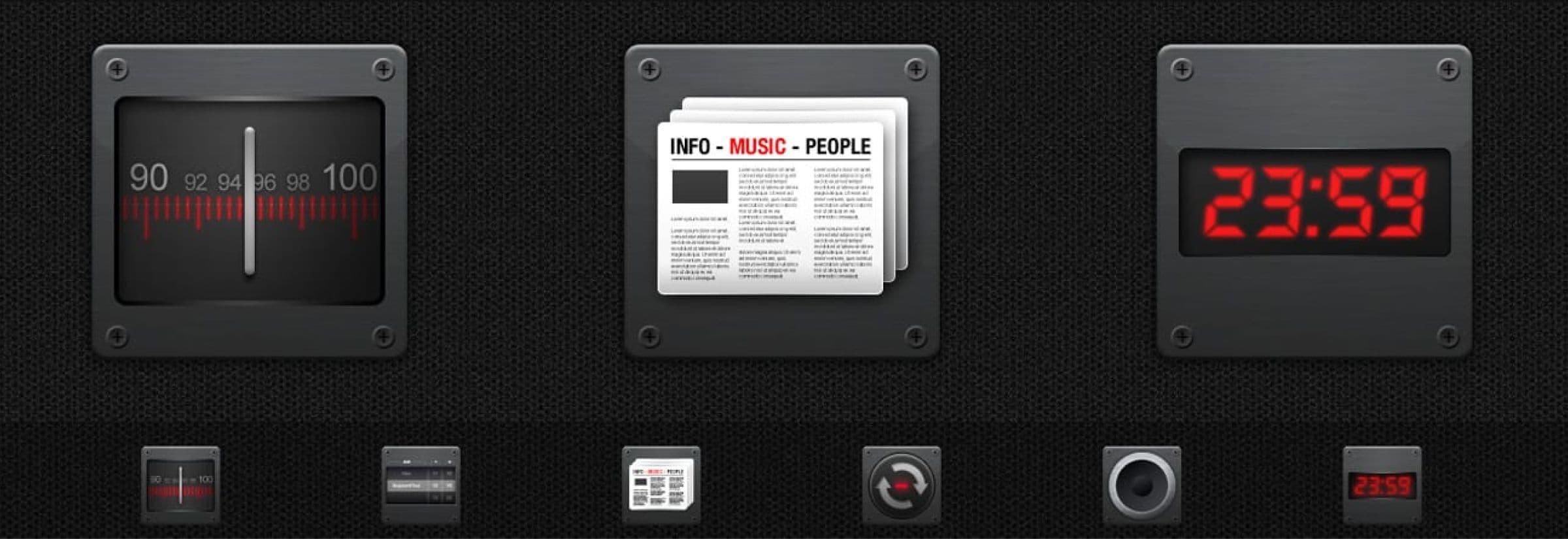 We designed a yummy play/pause button and a sliding information panel containings lots of content related to the currently playing track or show (for podcasts).